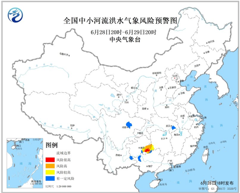 中央气象台6月28日18时发布中小河流洪水气象风险预警:
