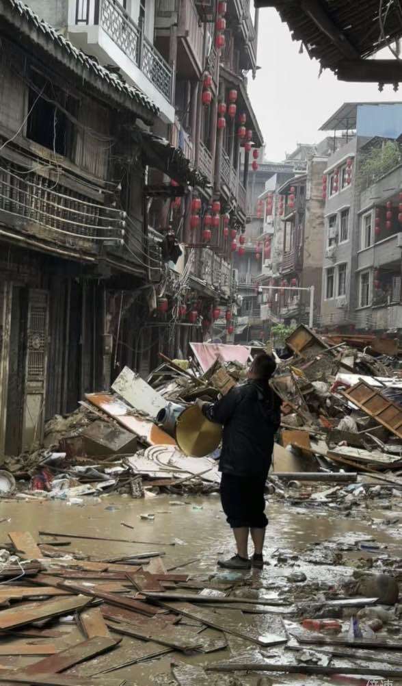 当地人挨家挨户敲锣通知撤离。(榕江县委宣传部供图)