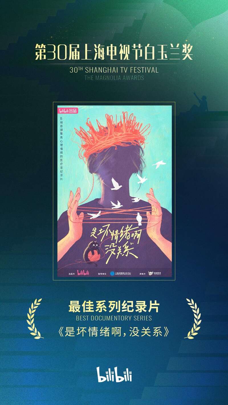 中国青年报客户端讯(中青报·中青网记者 沈杰群)6月27日,第30届上海电视节“白玉兰绽放”颁奖典礼举办,纪录片《是坏情绪啊,没关系》获得最佳系列纪录片奖项。