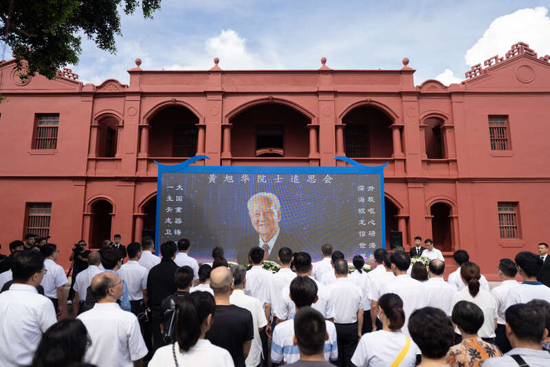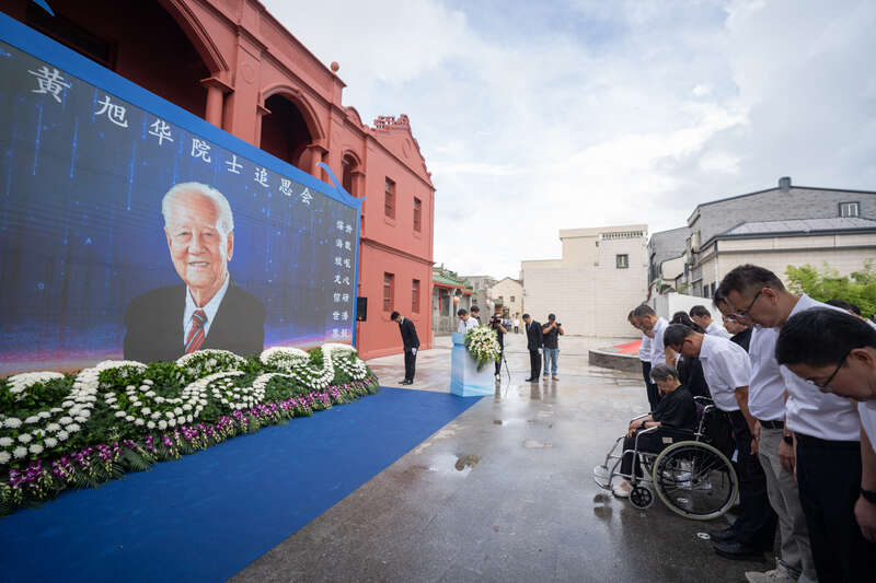 当天9时,人们在黄旭华院士少年时代求学成长的红楼前举行了追思仪式。现场,黄旭华院士的遗像摆放在红楼大门前,黄旭华院士家人和生前同事、好友以及家乡干部群众、师生代表一起深情回顾了他的一生。随后,大家一起进入红楼参观纪念黄旭华院士生平事迹展。