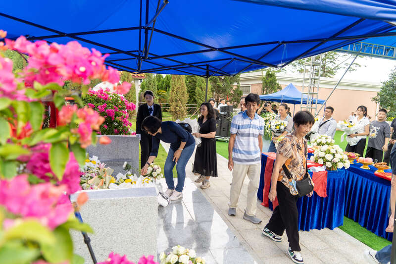10时,骨灰安放仪式正式开始。亲属代表擦拭墓碑后,在礼宾人员的引导下将黄旭华院士的骨灰安放进墓穴。参加仪式的人员向黄旭华院士墓碑行三鞠躬礼,并敬献鲜花。众人以简约但庄重的仪式,送别这位为我国核潜艇事业默默奉献一生的国之脊梁。