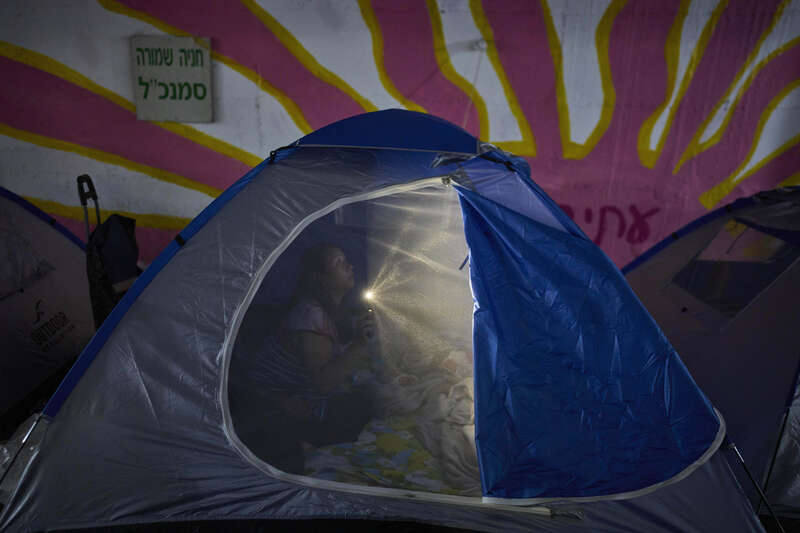 当地时间6月21日,以色列特拉维夫,一名居民在公共避难所过夜,以防范可能到来的导弹袭击。视觉中国供图