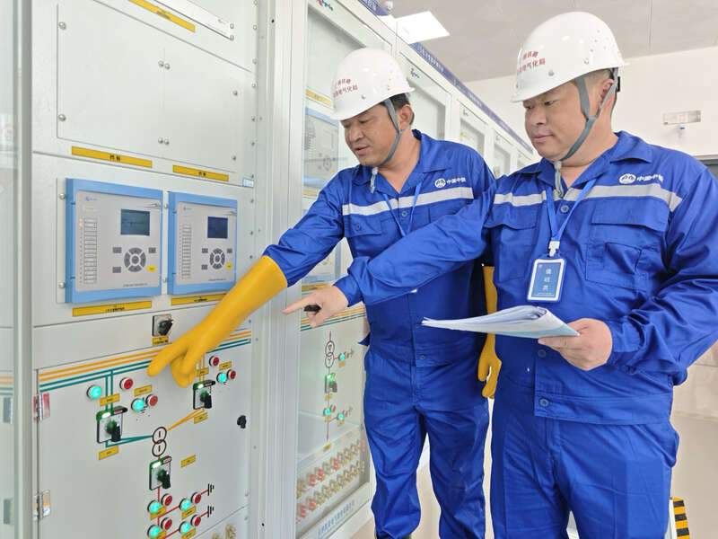 中铁电气化局二公司广湛项目部平均年龄仅28岁的青年突击队,是此次送电任务的“主力军”,他们在施工前期对设备安装、调试等环节进行反复校验,并针对施工过程中可能出现的问题制定了详细且完善的应急预案。合闸送电后,他们还对主变压器、断路器等关键设备进行了全面检查,确保所内设备运行正常,各项参数达到标准。
