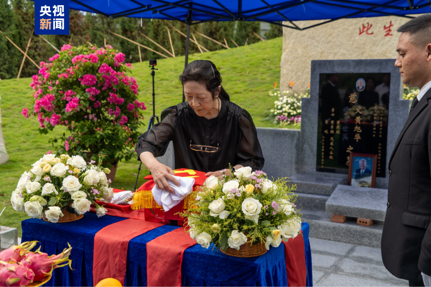 △黄旭华院士大女儿擦拭骨灰盒