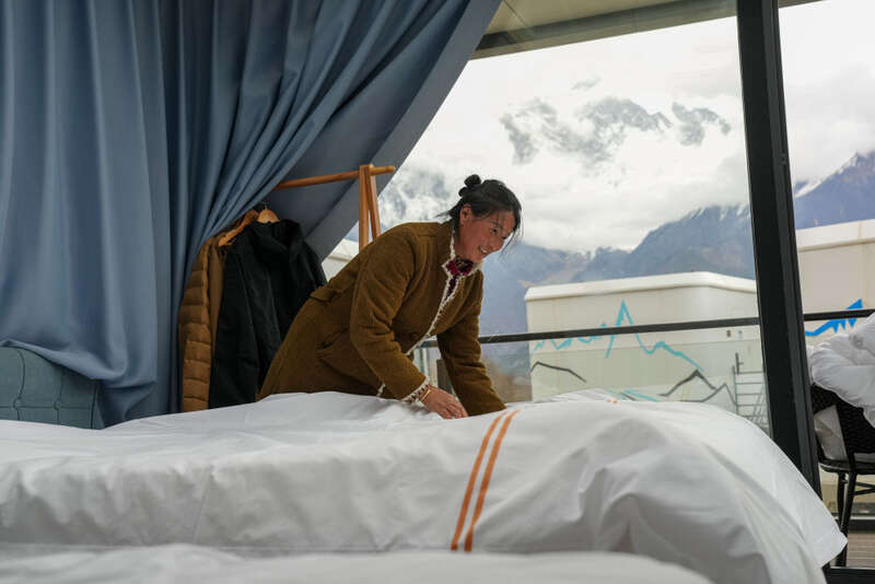 2025年4月4日,林芝索松村一家民宿的服务员在整理房间。近年来,林芝在生态保护与旅游发展的良性互动中,探索出“赏花+民宿”“赏花+文创”等复合经营模式。2025年4月4日至4月6日期间,林芝市累计接待游客20.86万人次,同比增长20.58%;实现旅游收入1.5亿元,同比增长37.62%。