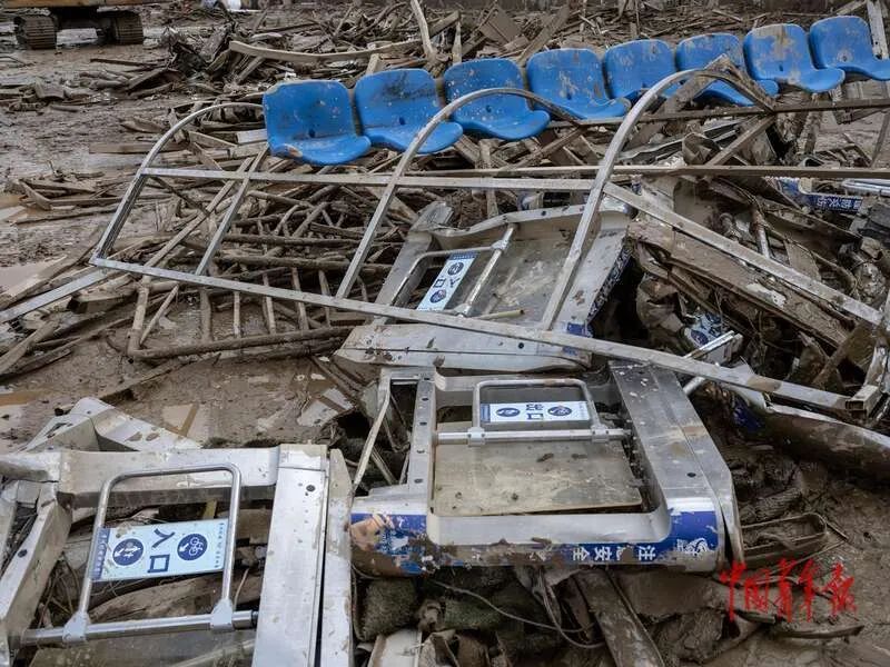 6月29日,贵州榕江县,“村超”赛场的座椅也被冲毁。中青报·中青网记者 李隽辉/摄