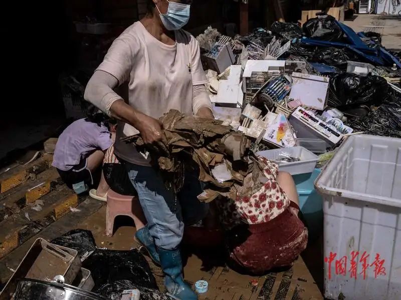 6月29日,贵州榕江县,市民们从屋中搬出被洪水浸泡的物品。中青报·中青网记者 李隽辉/摄