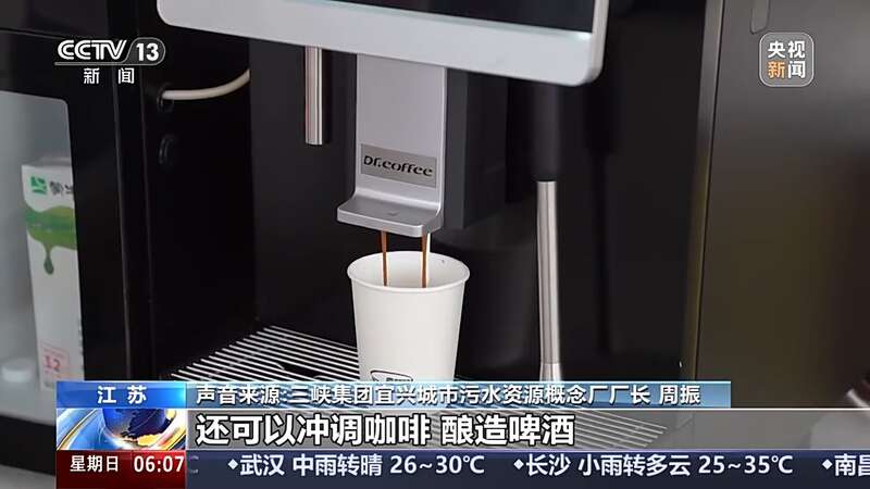 三峡集团宜兴城市污水资源概念厂厂长 周振:在这里,“污水”不仅可以直饮,还可以冲调咖啡、酿造啤酒,展示着未来污水利用的多重可能。