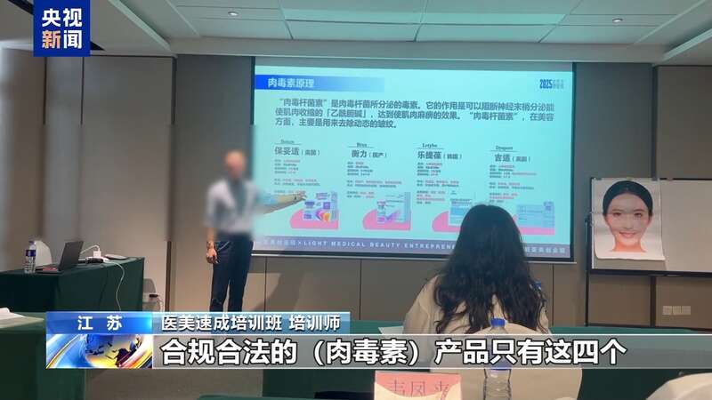 医美速成培训班 培训师:正规临床上使用的是A型肉毒素,但如果是小厂家拿不到A型,可能会做其他型号的。比如有一段时间,有用强效杀虫剂去代替肉毒素,所以说这个东西一定要谨慎去使用,因为肉毒素没有解药。