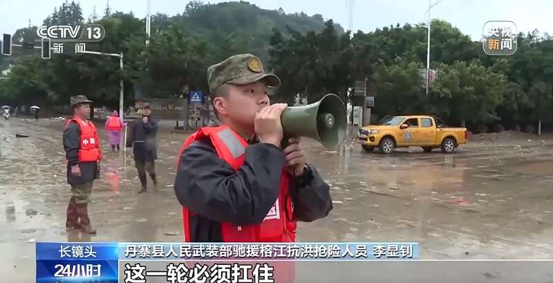丹寨县人民武装部驰援榕江抗洪抢险人员 李显钊:半个小时前才问了一下,家里报了平安,让我们在外面的人一切要平安,我们同时在努力,这一轮必须扛住,也必须坚持住。