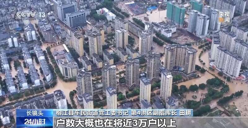 榕江县车民街道党工委书记 第4洪区副指挥长 田耕:4号洪区大概就是6万多人,户数大概也在将近3万户以上。现在来说就是和来支援我们的兄弟县的民兵,我们一起再到洪区里面,对低洼地带的小区,看还有没有人员,把他们劝离疏导出来。同时看还有其他什么险情的地方,我们要帮助加固。