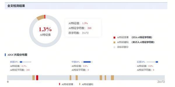 检测结果显示1.3%。“这也太低了!”王菁担心因AI检测率过低,论文会被抽去“盲审”。实际上,她撰写毕业论文的全程都用到了AI工具,包括内容生成、润色。
