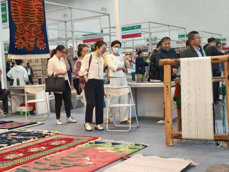展会上,杨永良带着他的诸多作品亮相,与来自全球的手工地毯参展商同台对话。他的织毯场景被镜头记录,他的工艺故事被写进展陈手册,他的作品更成为青海藏毯“活态传承”的生动注脚。