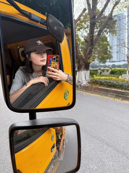 有一次,为了搭便车去找朋友,黄永鸿在去干活的路上捎了女儿一程。她爬上那辆黄色吸污车的副驾驶位,发现视野很宽阔,“觉得很酷”。但当车子开出去的时候,她就默默地把窗户摇了上去——尽管玻璃是透明的。