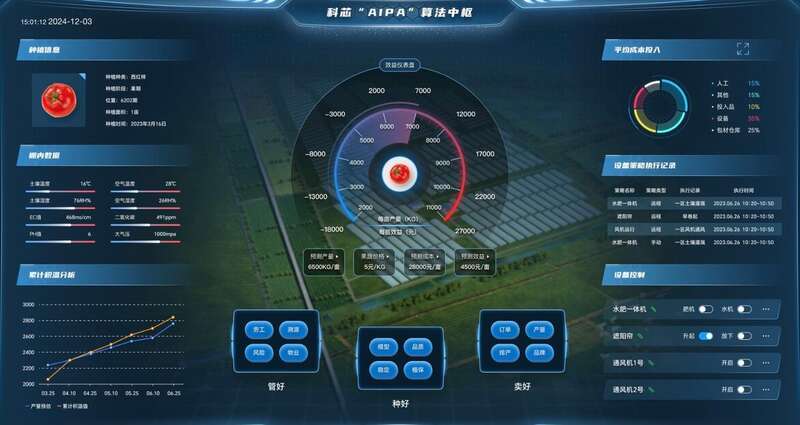 科芯自主研发的AIPA系统,整合了多项新兴技术,能够精准描述作物的生长动态,并作出生产力预测与效益评估。胡建龙形象地比喻:“这就像是给农作物配备了一位24小时在线的‘智能管家’,它能根据作物的需求,自动调整灌溉、施肥、遮阳等操作,确保作物在最佳环境中生长。”