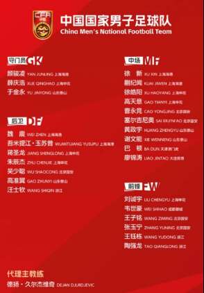 The Chinese FA announced a 26-player squad for the East Asian Cup. Players will undergo three days' recovery training in Dalian from July 2. Coach Djurdjevic promotes youth with an average age of 25.4 and four debutants. (Photo/ China Youth Daily)