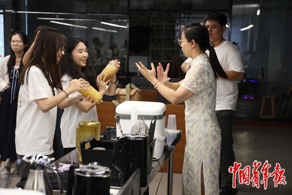 这项创新受到了来自广东药科大学食品科学与工程专业的大学生胡诗琪的喜爱。她说,将铁观音的茶汤加入水和果汁进行调味,更加符合年轻人的口味,也能推动铁观音茶走进更多年轻人的视野。