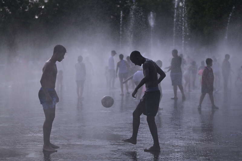 6月28日,西班牙马德里,气温超过40摄氏度,人们涌入曼萨纳雷斯河水域消暑。视觉中国供图