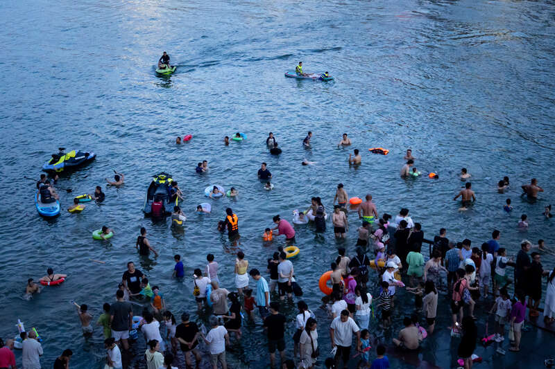 7月2日,重庆,夏日高温天气来袭, 嘉陵江化身天然避暑降温的水上乐园,市民在江中游泳戏水,体验单人浆板、水上摩托等运动项目,享受夏日清凉。视觉中国供图