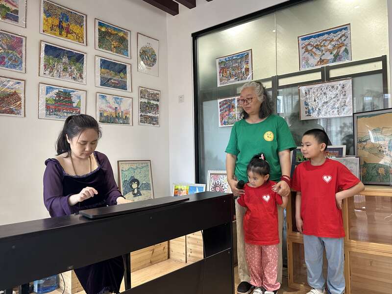 活动现场,中国音乐家协会会员佟薇与来自大凉山的残障儿童互动。佟薇凭借残障儿童随机按下的音符,即兴创作了一首钢琴曲与观众分享。硅谷青年交响乐团原大号首席叶英轩等嘉宾相继阐述了自己对展画的解读。