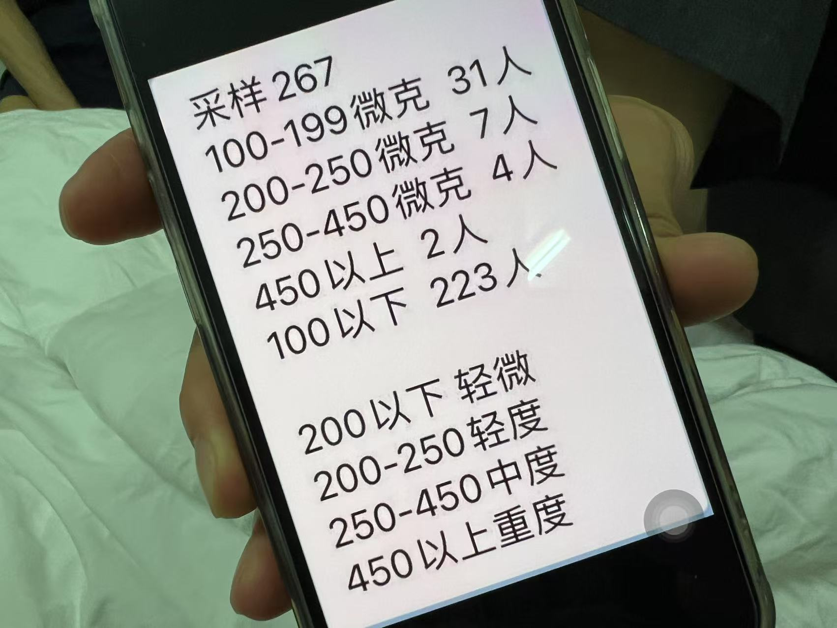 另有一位6岁儿童家长称,他家孩子天水检测之后,通知结果是463ug/L、现在西安检测结果为413ug/L,“我今天看到的情况,新入院的孩子中多数250ug/L至300ug/L多,超过400ug/L就两个孩子。”该家长说。