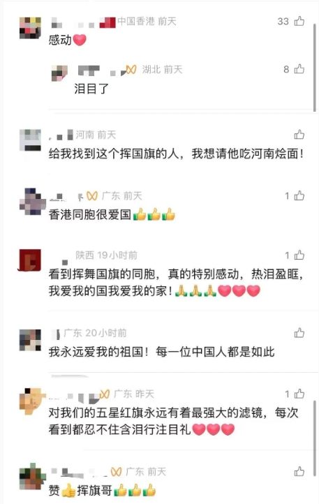 阿兵挥舞国旗,迎接山东舰航母编队访港。