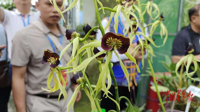 7月3日,广西百色,雅长保护区管理局兰花科普园珍稀兰花展区,奇特的章鱼兰引得大家纷纷驻足。中青报·中青网记者 谢洋/摄