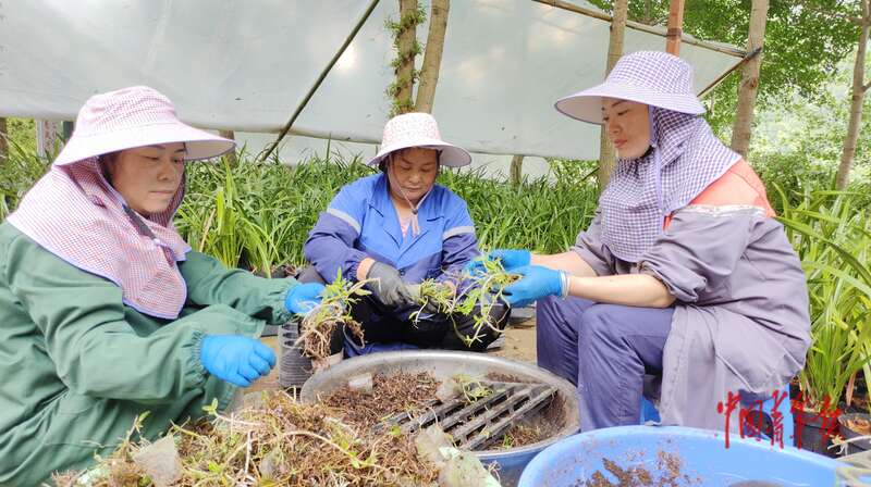 7月3日,广西百色,雅长保护区管理局兰花科普园内,工人在分选兰花幼苗。中青报·中青网记者 谢洋/摄
