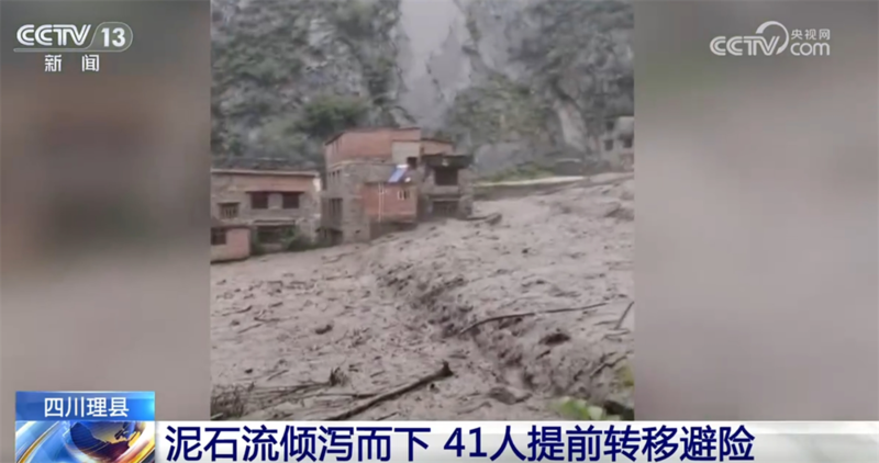四川理县:泥石流倾泻而下 41人提前转移避险