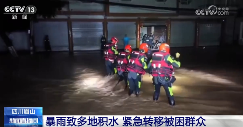 四川眉山:暴雨致多地积水 紧急转移被困群众