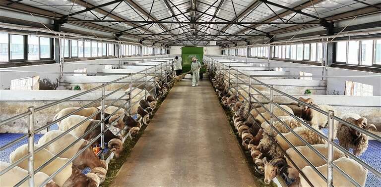 天津市援建的昌都市阿旺绵羊现代化养殖基地。