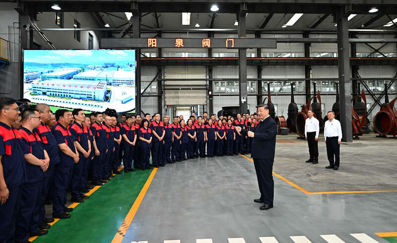 7日下午,习近平总书记在阳泉阀门股份有限公司考察。他察看企业生产车间和产品展示,同现场工人亲切交谈,了解山西加快产业转型升级、推动高质量发展等情况。