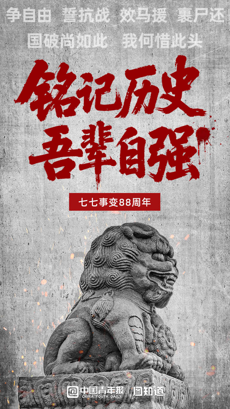 88年前的今天,七七事变爆发,拉开全民族抗战的序幕。从那时起,大江南北,长城内外,全体中华儿女冒着敌人的炮火共赴国难。如今,硝烟散尽,山河无恙,但那段充满血泪的历史永不敢忘!铭记历史,吾辈自强!
