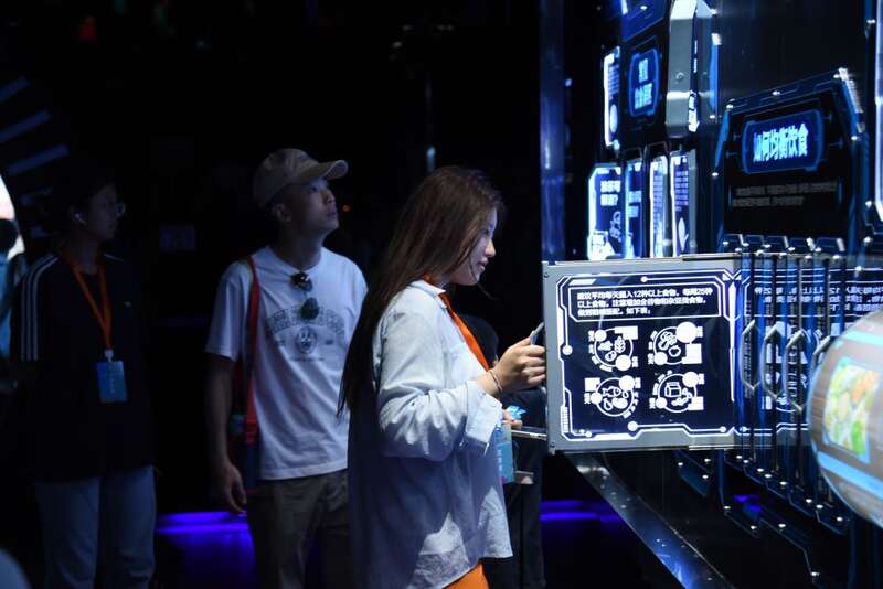 7月5日,参加夏令营的台湾青年们在横琴粤澳中医药科技创意体验馆参观。新华社记者 洪泽华 摄