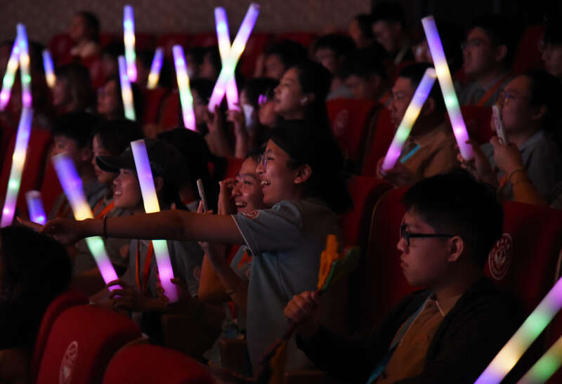 7月4日,在第二十二届台胞青年千人夏令营的开营仪式上,两岸青年欣赏文艺表演节目。新华社记者 洪泽华 摄