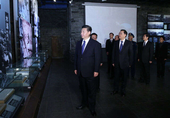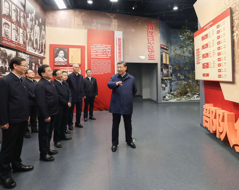 2023年12月3日,习近平在上海考察结束返京途中,来到江苏省盐城市参观新四军纪念馆。