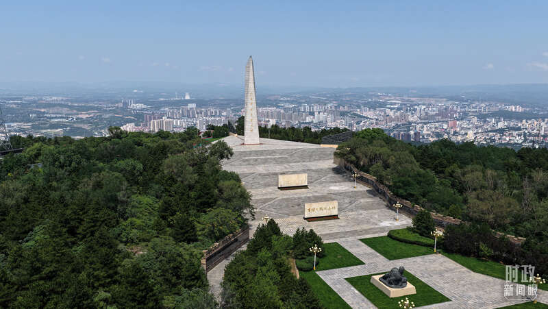 百团大战纪念建筑群坐落于阳泉市区西南部的狮脑山,这里地势险要,百团大战中著名的狮脑山鏖战就发生在这里。7月7日下午,习近平总书记来到百团大战纪念碑广场,向百团大战烈士敬献花篮。