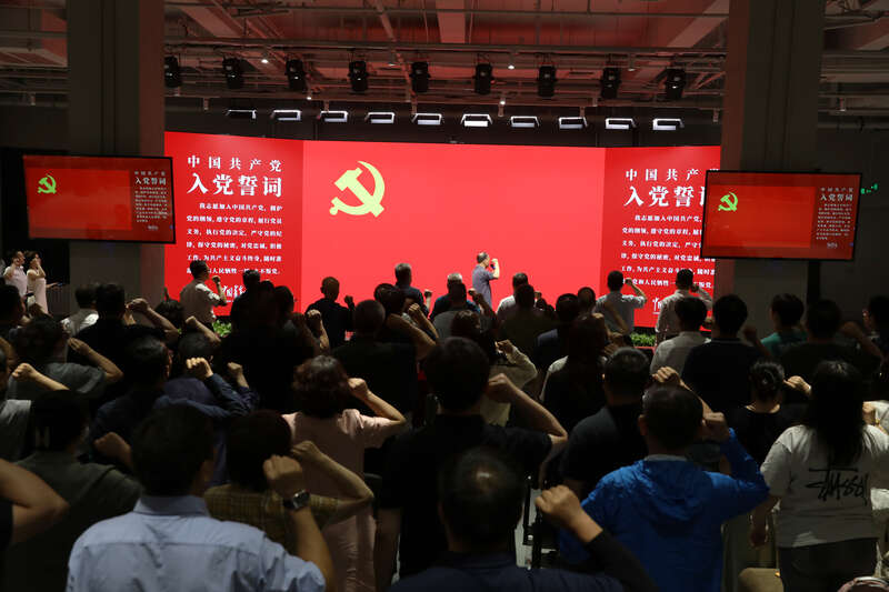 活动最后,在老党员代表、中青报原党组书记、社长王宏猷同志的带领下,现场全体党员重温入党誓词。