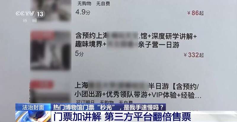 上海市静安区人民检察院第三检察部副主任 胡俊君:每天早上9点,会放出一定的票量来,但是往常的时候可能并不会发生这种一分钟内所有的票都被抢光。从这个现象来看跟往常是不一样的,还有一个异常点是在第三方平台上发现有门票在出售,但其实这个博物馆跟第三方平台没有相关的合作。