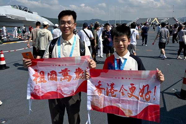“我太幸运了,在一票难求的情况下,我抽到了7月5日的山东舰参观票。”谭超雄眉飞色舞地说,他原本在重庆旅游,得知“中奖”后,4日晚上连夜飞回香港,为的是一睹山东舰的风采。“我要把所有的武器装备都拍下来,拿回去和家人一起看,让他们也看看我们国家的伟大成就。国家近30年发展太快了。”