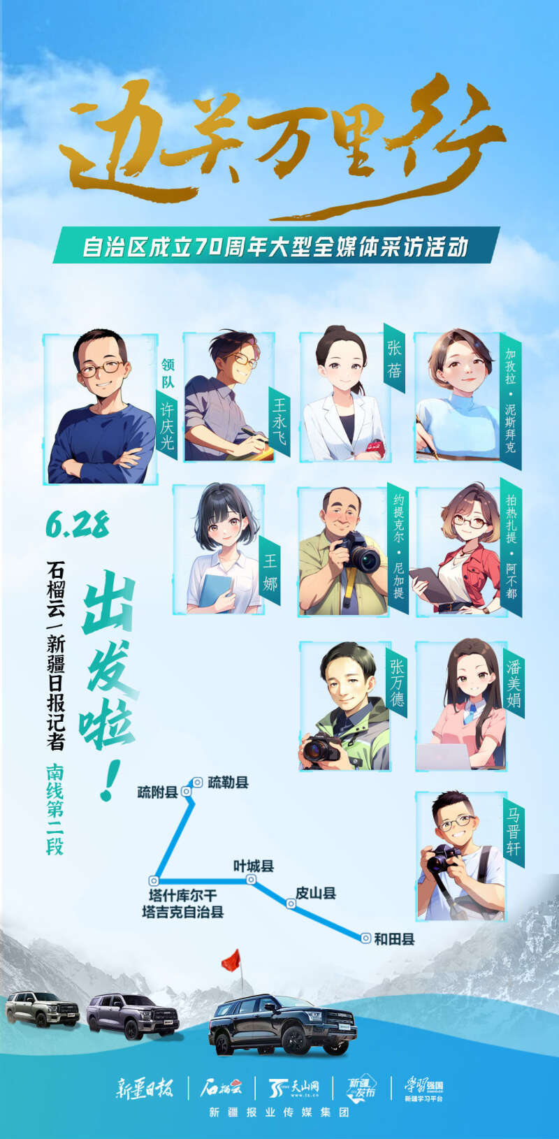 石榴云/新疆日报讯(记者 张万德摄影报道)从6月29日开始,“边关万里行——自治区成立70周年大型全媒体采访活动”南线采访团队先后前往喀什市、疏附县、疏勒县、伽师县、塔什库尔干塔吉克自治县、叶城县等地进行采访。从喀什古城到农家小院,从城区到工业园区,从边境派出所到红其拉甫国门……记者们一直在路上记录70年来的发展变迁。