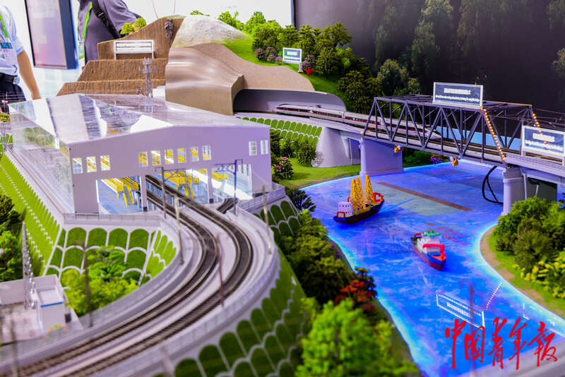 7月8日,第十七届中国国际现代化铁路技术装备展览会上的沙盘模型可以让观众全方位视角观看。中青报·中青网见习记者 陈思阳/摄