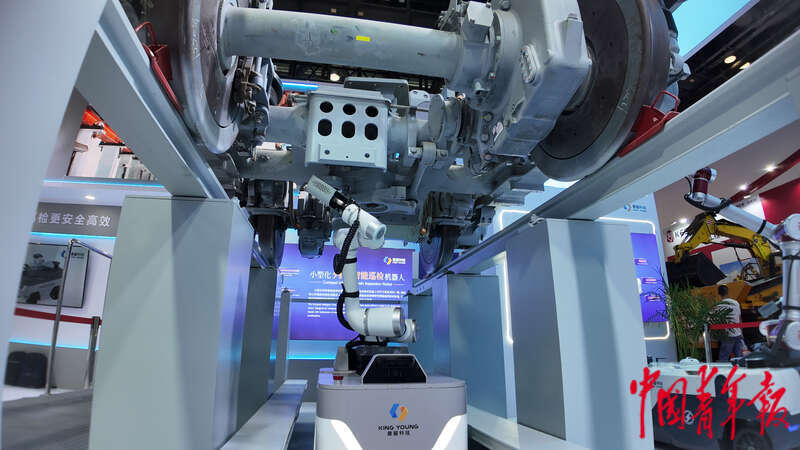 7月8日,第十七届中国国际现代化铁路技术装备展览会,机器人检查车辆底盘。中青报·中青网见习记者 陈思阳/摄