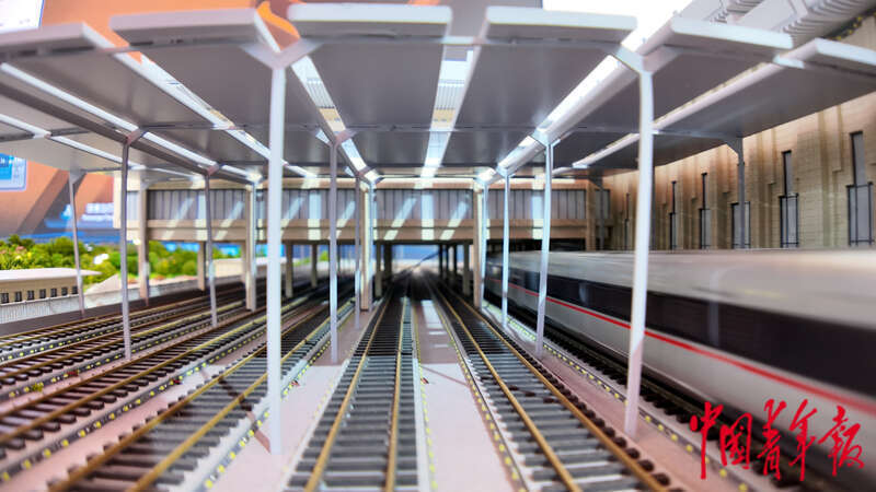 7月8日,第十七届中国国际现代化铁路技术装备展览会,沙盘模型上模拟复兴号动车穿过济南西站。中青报·中青网见习记者 陈思阳/摄