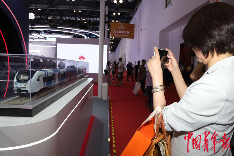 7月8日,第十七届中国国际现代化铁路技术装备展览会上,国家能源集团展位上向观众展示不一样的铁路货运。中青报·中青网见习记者 陈思阳/摄