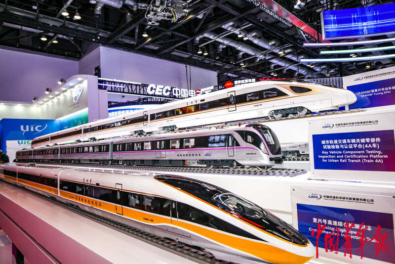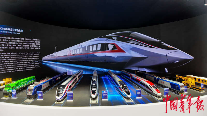7月8日,第十七届中国国际现代化铁路技术装备展览会,中国铁路展台上亮相各式各样的列车模型。中青报·中青网见习记者 陈思阳/摄