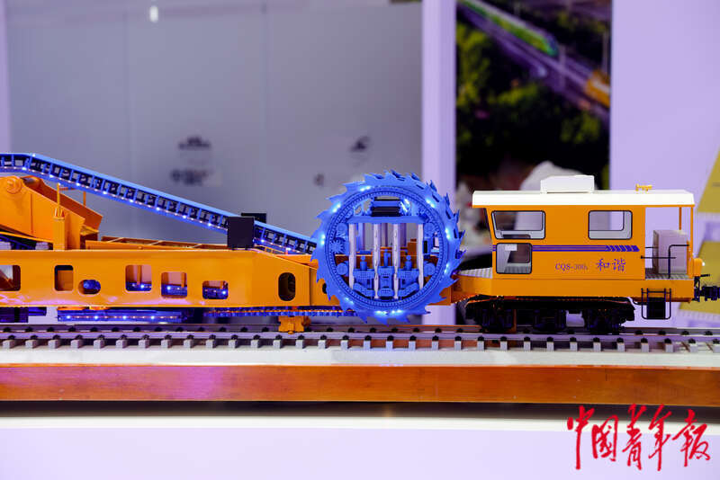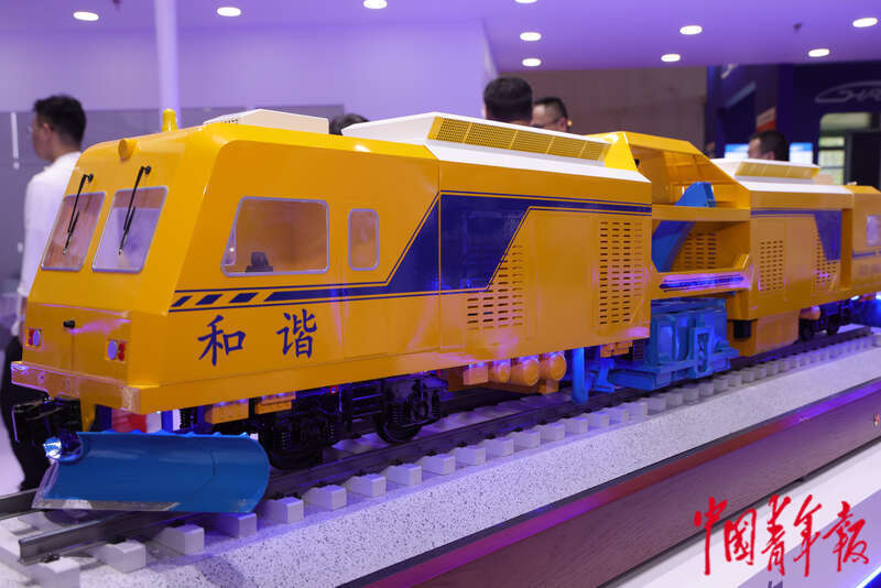 7月8日,第十七届中国国际现代化铁路技术装备展览会,侧切式清筛车。中青报·中青网见习记者 陈思阳/摄