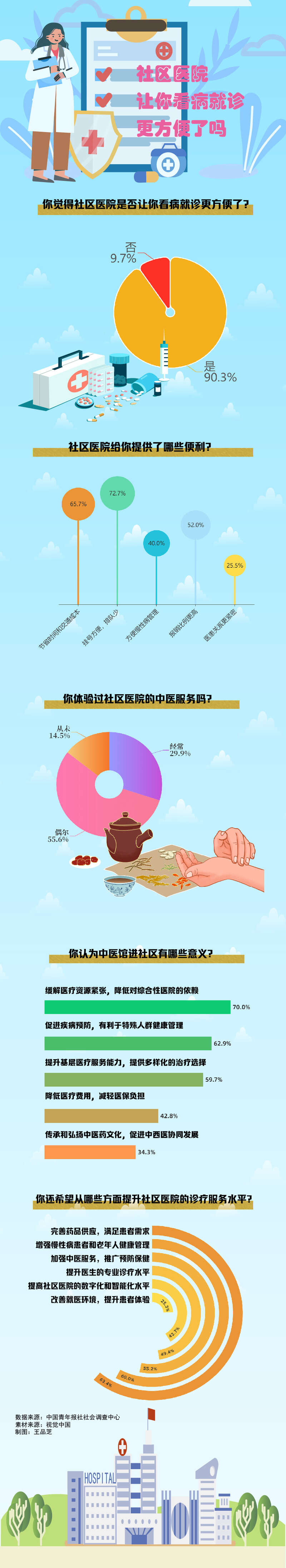 挂专家号、看中医、做体检……家门口的社区医院给很多人带来便利。中医馆进社区后,推拿、针灸、拔罐等中医服务更丰富了诊疗选择。中国青年报社社会调查中心的一项调查显示,90.3%的受访者觉得社区医院使看病就诊更方便。此外,85.5%的受访者体验过社区医院的针灸、推拿、中药调理等中医服务。中医馆进社区,62.9%的受访者认为能促进疾病预防,有利于特殊人群健康管理。#读数