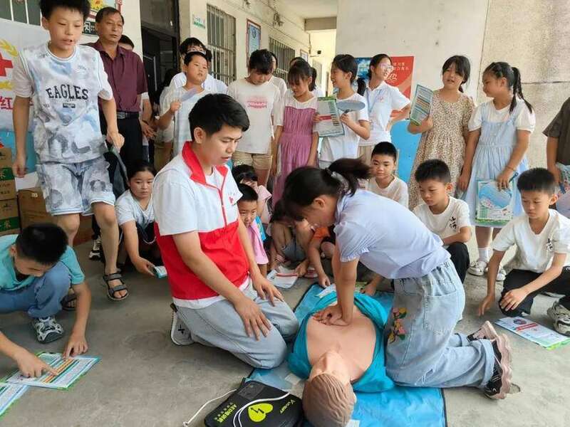 中国青年报客户端讯(易荣波 中青报·中青网记者 朱娟娟)7月10日,在湖北省孝感市大悟县,团县委、县妇联等部门联合湖北工程学院“映山红”支教团,在黄站镇中心小学开展防溺水及急救安全知识讲座,以“安全教育第一课”开启今年暑期托管志愿服务。