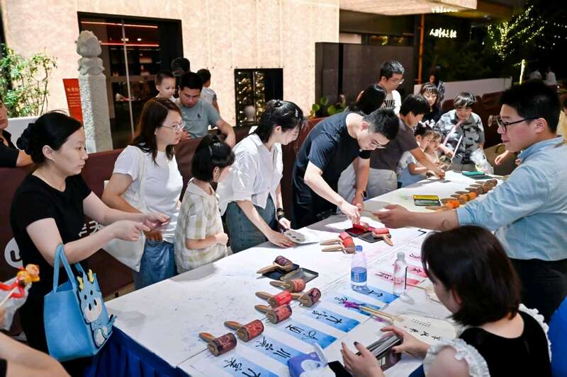 活动现场还设置了多个互动体验区。居民们不仅可以近距离观赏手工制笔技艺、核雕展示等传统非遗手艺,还能亲身参与剪纸、香包产品等制作体验活动,感受传统文化的独特韵味。每个摊位都配有节气图解与展品说明,展现非遗的独特魅力与匠人精神。